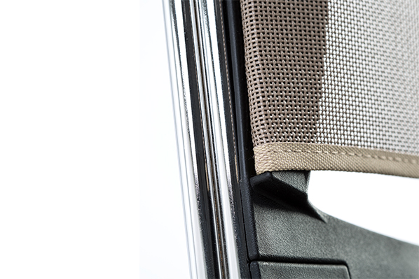 Respaldo en malla técnica de alta resistencia y estructura de polipropileno.