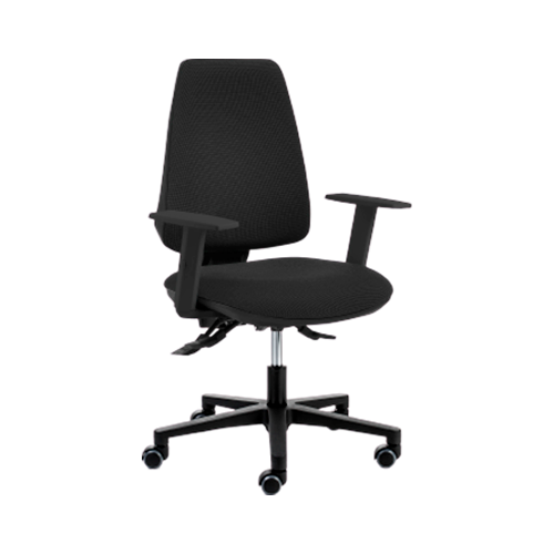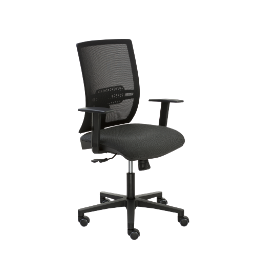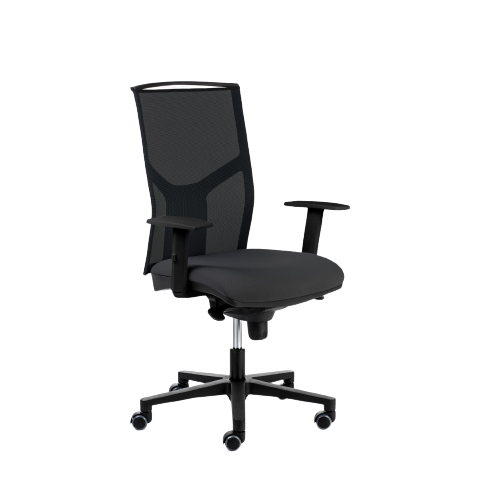 S3300-1201-02C5+BR02 base nylon negro, mecanismo sincro, respaldo malla negra, asiento C5 negro, brazos regulables y tensor lumbar asimétrico.